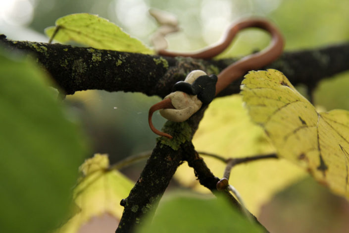 Avec de la pâte à modeler on a créé des figurines qu’on a ensuite mis en scène et photographié dans le parc de la Grange, abordant ainsi la question du cadrage et de la profondeur de champ.