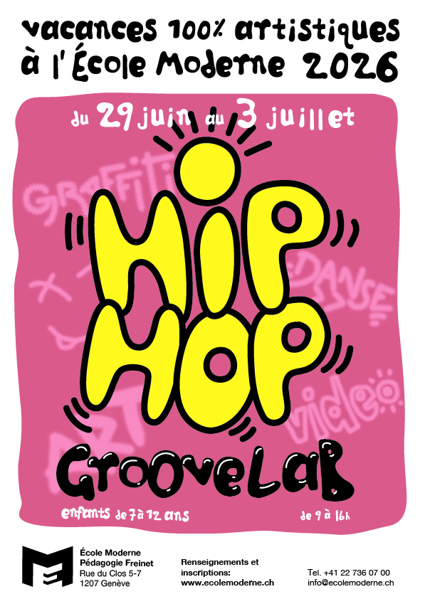 Encadré par Filippo Vannini, enseignant en arts visuels à l’École Moderne, le camp bénéficie également de la présence de Izïa et Milla, danseuses expérimentées de hip-hop L.A. style (école Zou, Genève).